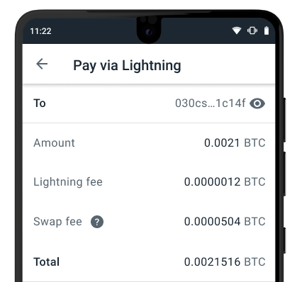 In your payment detail, you will see two different fees: 1) “Lightning fee” are the routing costs of the off-chain component of your payment, and 2) “Swap fee”, includes the first on-chain transaction to the swap provider.